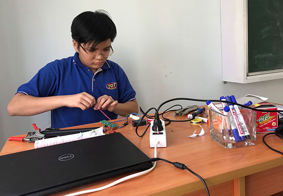 Đam mê khám phá và yêu thích nghiên cứu khoa học, Đạt luôn tự đặt ra cho bản thân câu hỏi trước những vấn đề của đời sống và tìm cách giải quyết những câu hỏi đó bằng… công nghệ. Cụ thể, em đã chế tạo mô hình thủy canh vườn - ao - chuồng tự động sử dụng tại trường và ở nhà. Hiện tại, Đạt đang cùng nhóm bạn thực hiện mô hình kính dò đường dành cho người khiếm thị. “Các thiết kế em đều sử dụng kiến thức vật lý, hóa học, công nghệ…, đó là những kiến thức đã được học trong nhà trường. Thông qua các sản phẩm, kiến thức được đưa vào đời sống một cách gần gũi, dễ hiểu, không còn khô khan, bác học”, Đạt cho biết.
