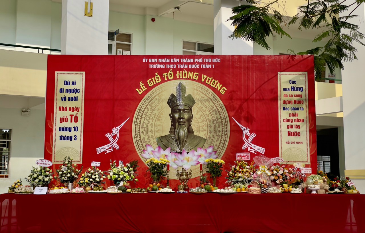 Để tưởng nhớ và tỏ lòng biết ơn công lao dựng nước của các Vua Hùng. Sáng ngày 15/04/2024, trường THCS Trần Quốc Toản 1 long trọng tổ chức Lễ giỗ Quốc Tổ Hùng Vương. Giỗ Tổ Hùng Vương là dịp để giáo dục truyền thống “Uống nước nhớ nguồn”, lòng biết ơn sâu sắc các Vua Hùng đã có công dựng nước và các bậc tiền nhân kiên cường chống giặc ngoại xâm giữ nước, đồng thời còn là dịp quan trọng để chúng ta quảng bá ra thế giới về một Di sản vô cùng giá trị, độc đáo, đã tồn tại hàng nghìn năm, ăn sâu vào tâm hồn, tình cảm, trở thành đạo lý truyền thống của đồng bào cả nước, kiều bào ta ở nước ngoài, là ngày để toàn Đảng, toàn quân, toàn dân ta cùng nguyện một lòng mãi mãi khắc ghi lời căn dặn của Chủ tịch Hồ Chí Minh: “Các Vua Hùng đã có công dựng nước - Bác cháu ta phải cùng nhau giữ lấy nước”.